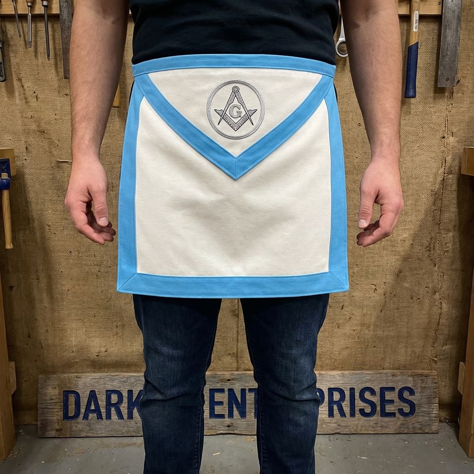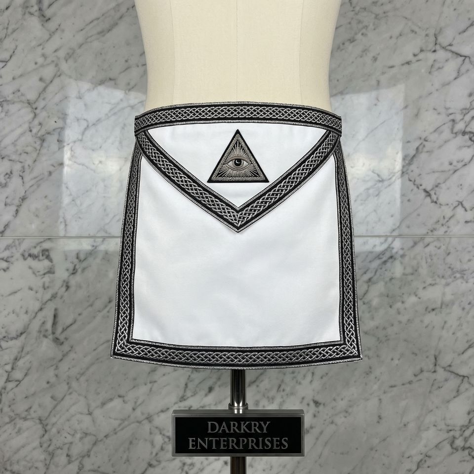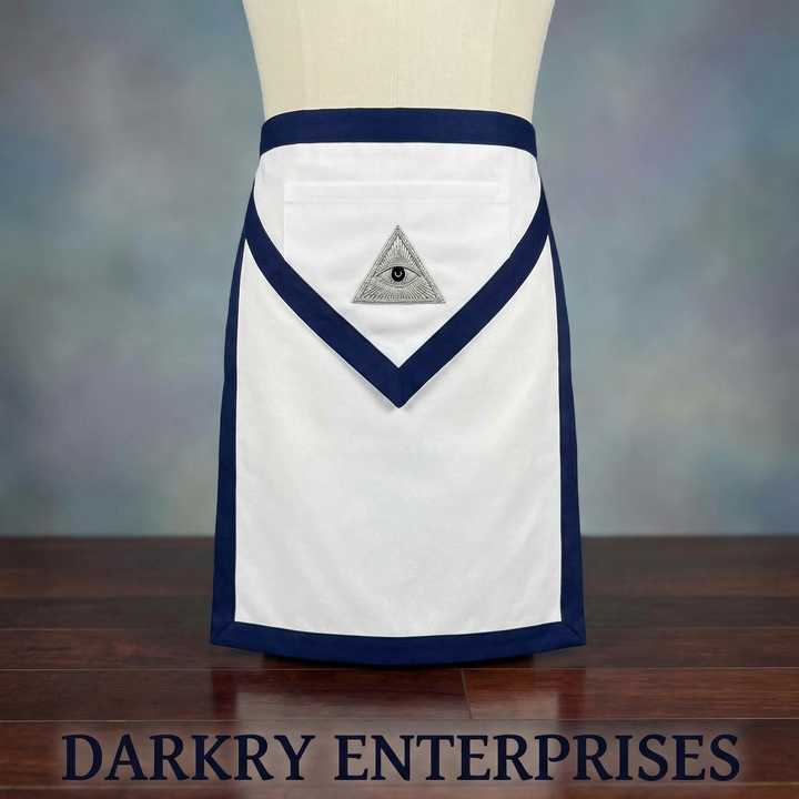 ผู้ผลิตตามสั่ง ผ้ากันเปื้อนลายดวงตาที่มองเห็นได้ทุกทิศทางของสมาคมเมสัน ขอบสีน้ำเงิน ปักมือ ชุดเครื่องแบบสำหรับพิธีกรรม ขายส่งจากโรงงาน รับสั่งทำตามแบบ OEM ODM