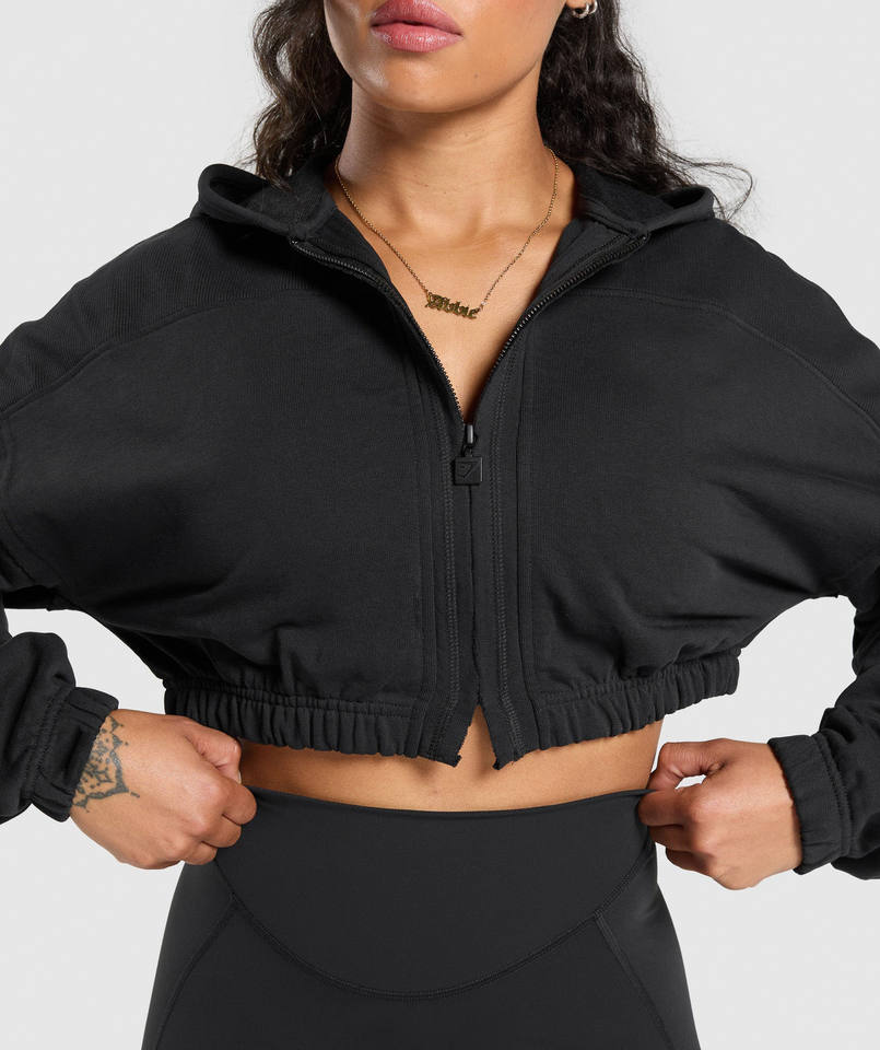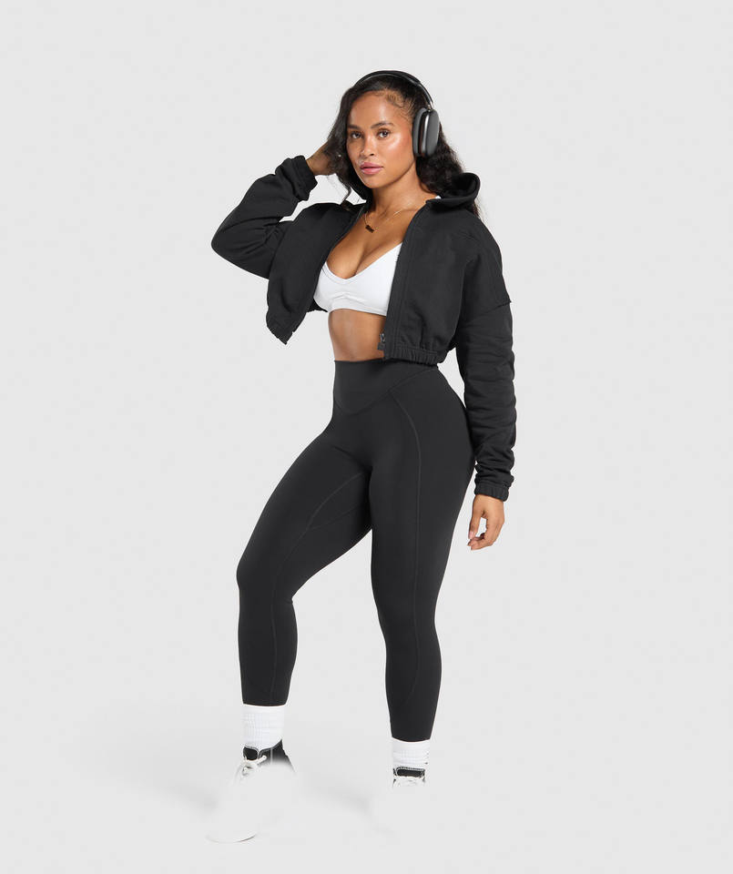 ผู้ผลิตตามสั่ง OEM เสื้อฮู้ดครอปท็อปผ้าฟลีซน้ำหนักเบา 100% ผ้าฝ้าย สำหรับผู้หญิง ออกกำลังกายฤดูหนาว แห้งเร็ว มีซิป