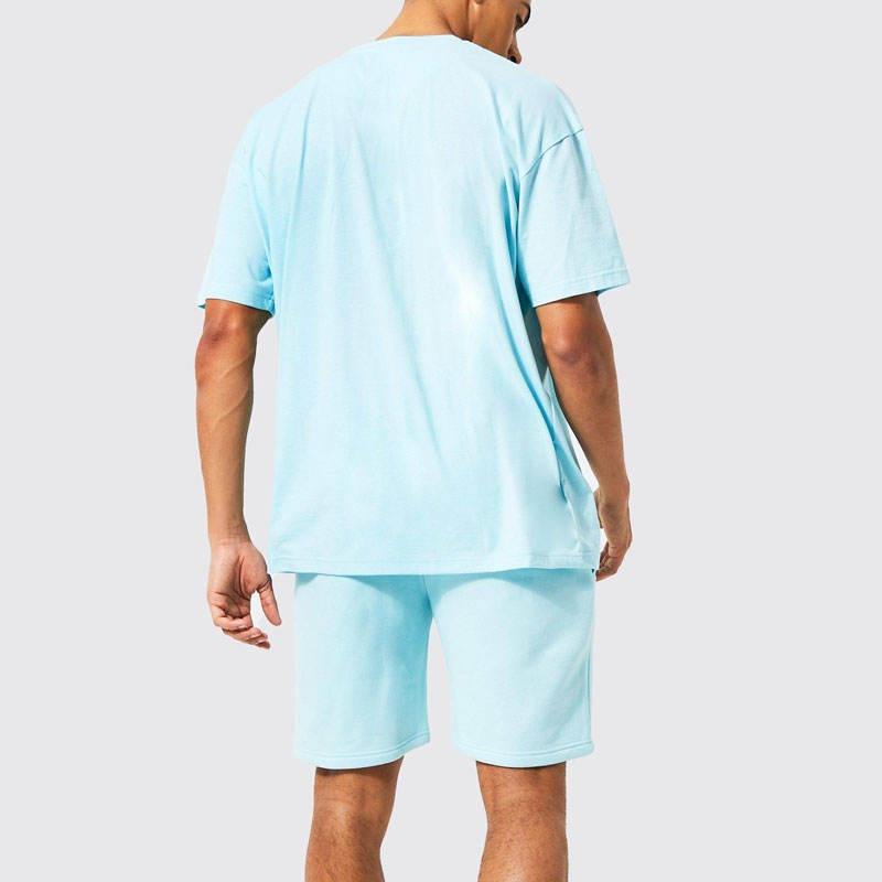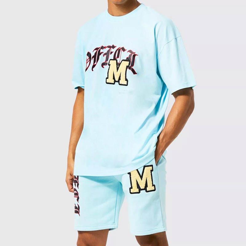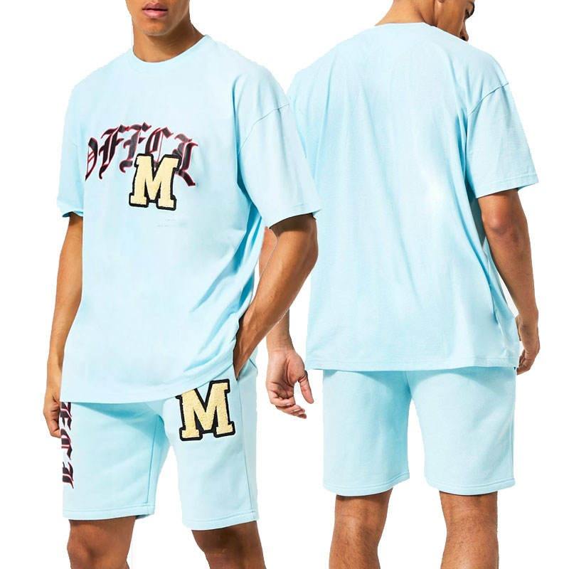 ชุดกางเกงขาสั้นสองชิ้นสำหรับผู้ชายชุดเสื้อและกางเกงขาสั้นพิมพ์ลายด้วยแป้ง