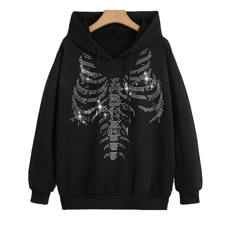 เสื้อฮู้ดเสื้อแจ็คเก็ตมีซิปโอเวอร์ไซส์ทำจากผ้าฝ้าย100% ไร้ตะเข็บเปิดไหล่ทำจากพลอยเทียมตามสั่ง
