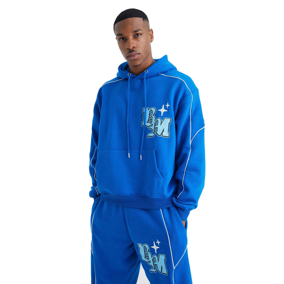 ชุดเซ็ตสตรีทแฟชั่นผู้ชาย ลายพิมพ์ เสื้อฮู้ดดี้ผ้าฟลีซคอตตอน 420 กรัม GSM ทรงหลวมสบาย กางเกงขายาวทรงกระบอก รับผลิตแบบ OEM แบรนด์ส่วนตัว