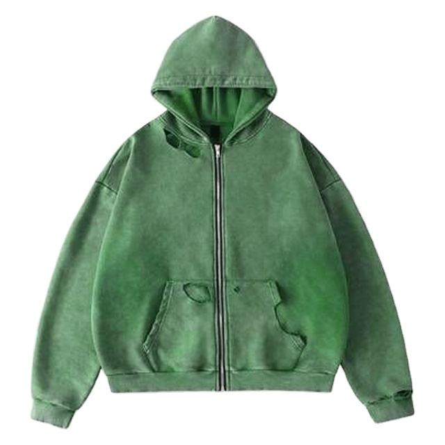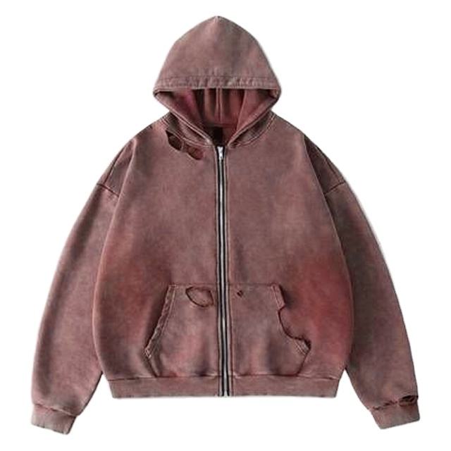 เสื้อฮู้ดซิปแบบวินเทจทรงโอเวอร์ไซส์ ผ้าฝ้ายฟลีซหนานุ่ม ผลิตตามสั่ง