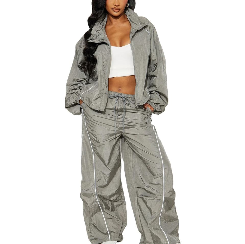 ชุดเซ็ตเสื้อแจ็คเก็ตและกางเกงขาสั้นผ้าไนลอนบางสำหรับผู้หญิง ผลิตตามสั่ง พร้อมปักโลโก้ ชุดวอร์มโพลีเอสเตอร์ ขนาดสั่งทำได้ รุ่น 2026