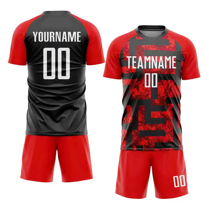 ผู้ผลิตตามสั่งพัฒนาชุดฟุตบอลโพลีเอสเตอร์แบบซับลิเมชั่นพร้อมตะเข็บที่ทนทานสำหรับตลาดเสื้อผ้าระดับโลก