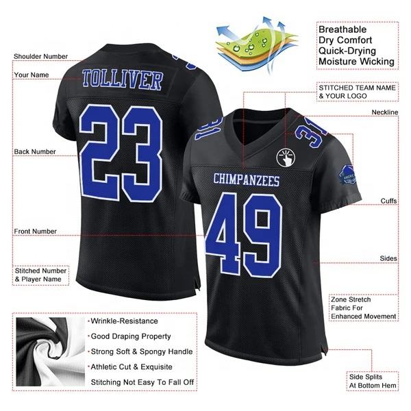 เสื้อฟุตบอลผ้าโพลีเอสเตอร์แบบกำหนดเองแห้งเร็วระบายอากาศแขนสั้น100% พิมพ์โลโก้ผ้าโพลีเอสเตอร์ออกแบบได้ตามต้องการ
