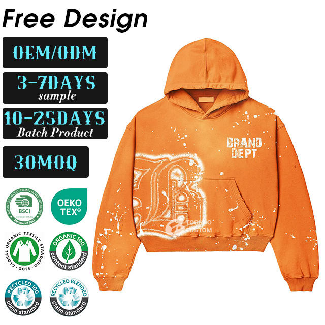 เสื้อฮู้ดดี้ผ้าฝ้ายฟอกสีแบบซิปสำหรับผู้ชาย ผลิตตามสั่ง ตกแต่งด้วยป้ายปักลายพิมพ์ ทรงหลวม น้ำหนักผ้า 350 กรัม