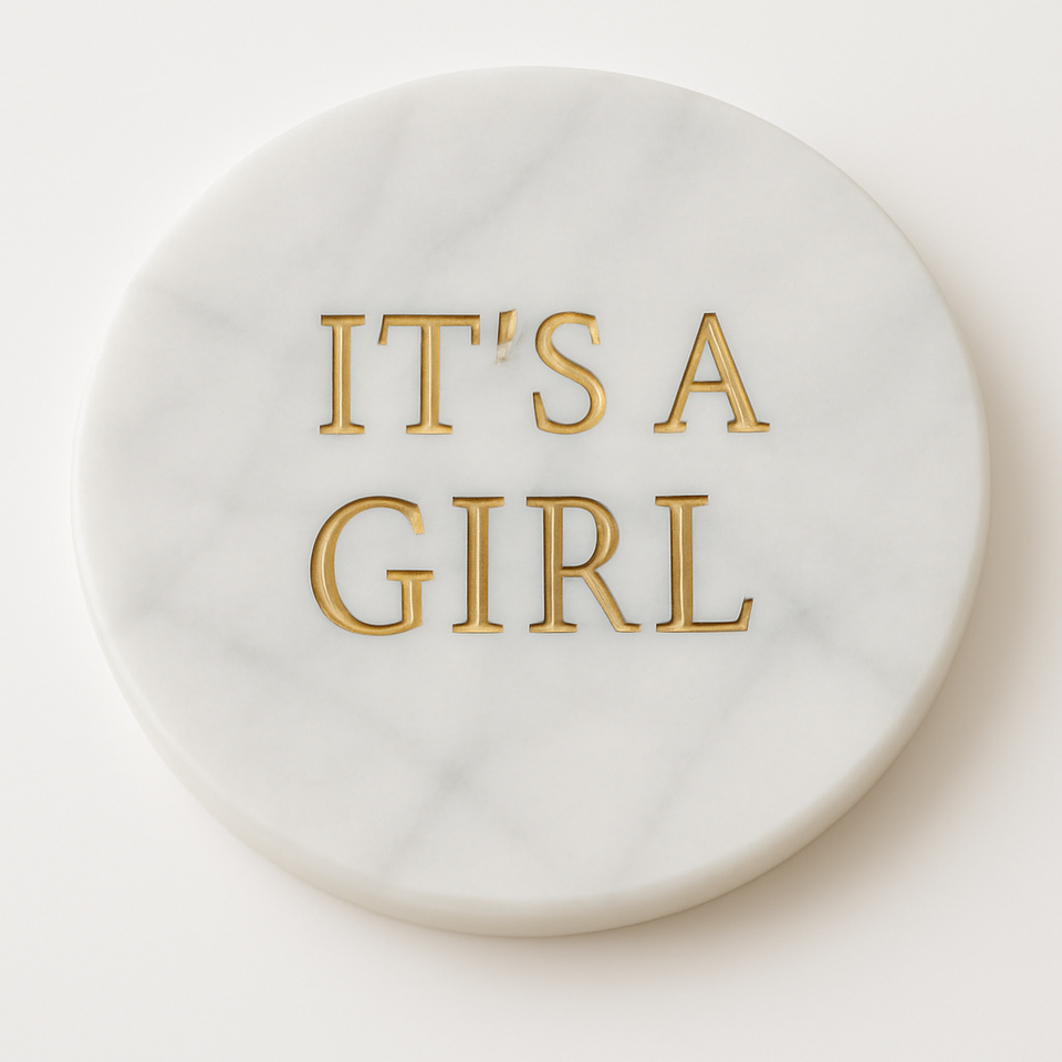 รถไฟเหาะหินอ่อนที่กำหนดเองกับหญิงสาวในตัวอักษรสีทองที่สง่างามเหมาะสำหรับของขวัญที่เปิดเผยเพศ