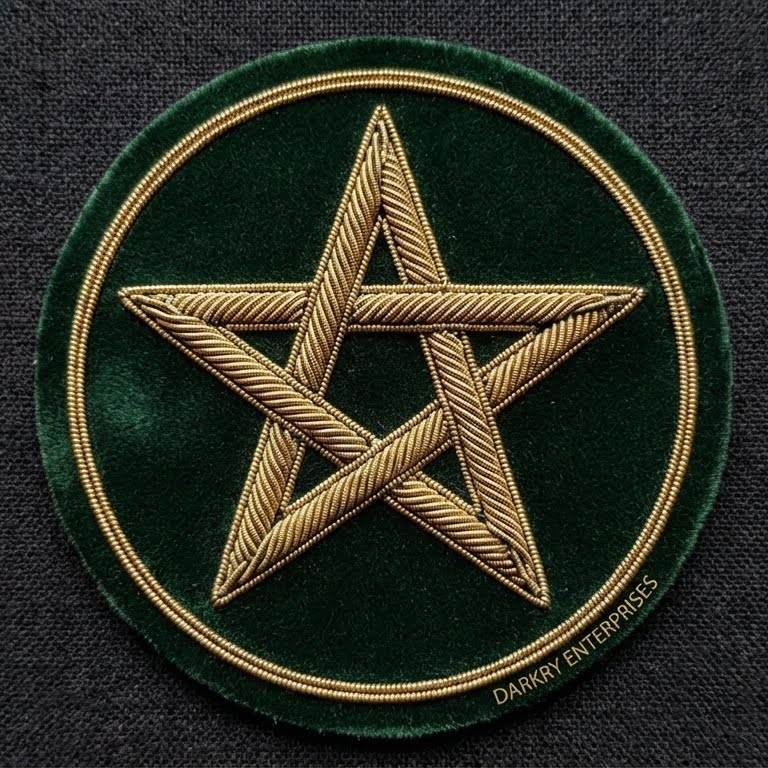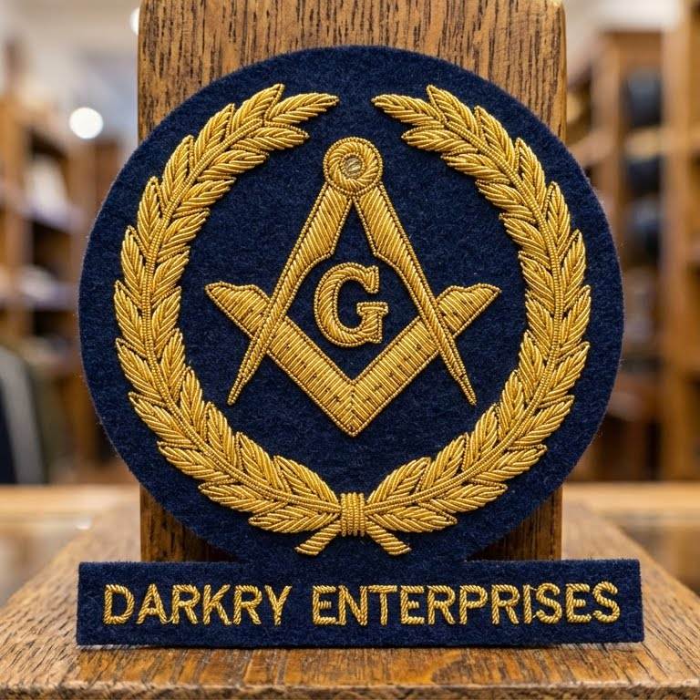 ตราสัญลักษณ์พวงหรีดเมสันแบบกำหนดเอง ปักด้วยลวดทองคำ ด้ายสีทองเมทัลลิก แผ่นปะผ้าสักหลาดสีกรมท่า ทำด้วยมือ ตราสัญลักษณ์ติดเสื้อเบลเซอร์