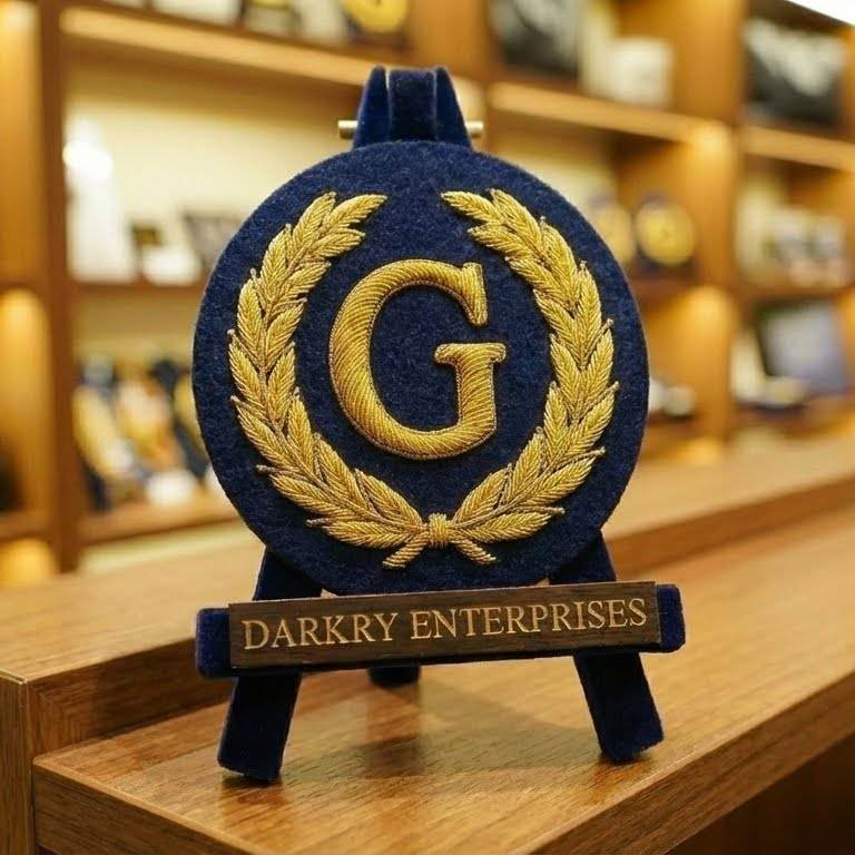 ตราสัญลักษณ์เมสันแบบกำหนดเอง ปักด้วยด้ายทองคำ ทำด้วยมือ รูปตัวอักษร G ประดับพวงหรีดใบลอเรล สีทอง