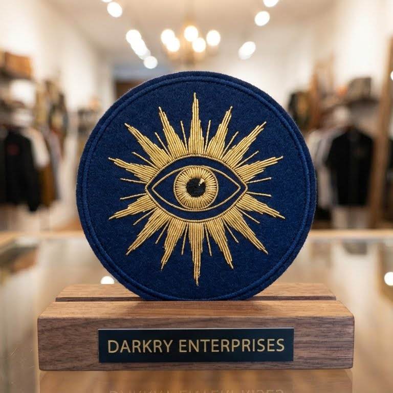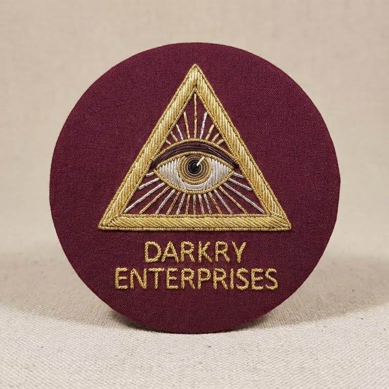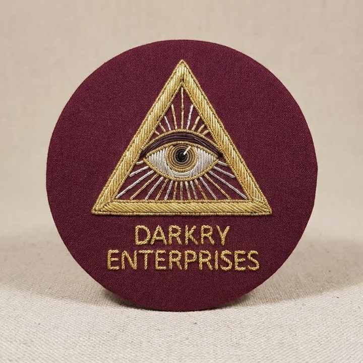 ตราสัญลักษณ์เมสันแบบกำหนดเอง ปักด้วยด้ายทองคำ ทำด้วยมือ รูปดวงตาที่มองเห็นได้ทุกทิศทาง รูปสามเหลี่ยม ผ้าสักหลาดสีแดงเลือดหมู