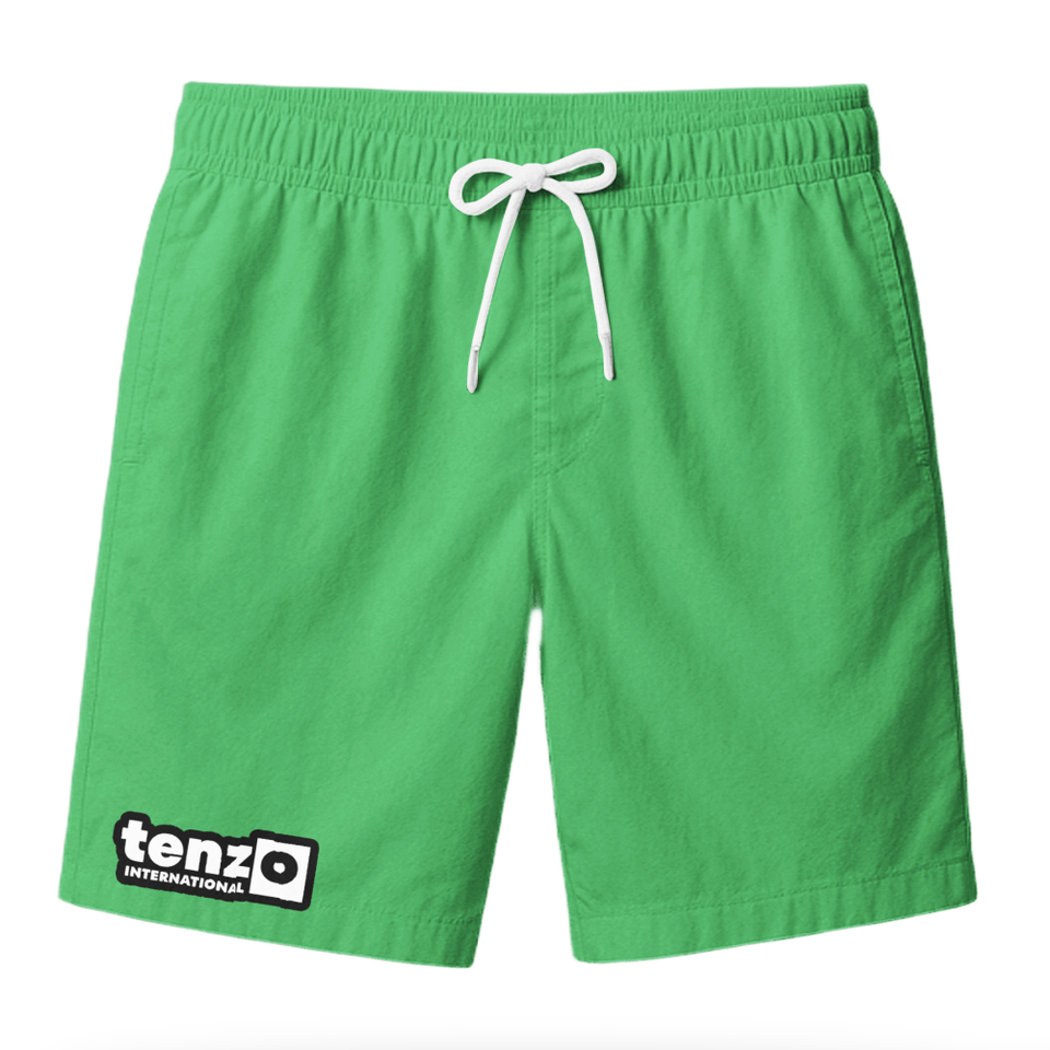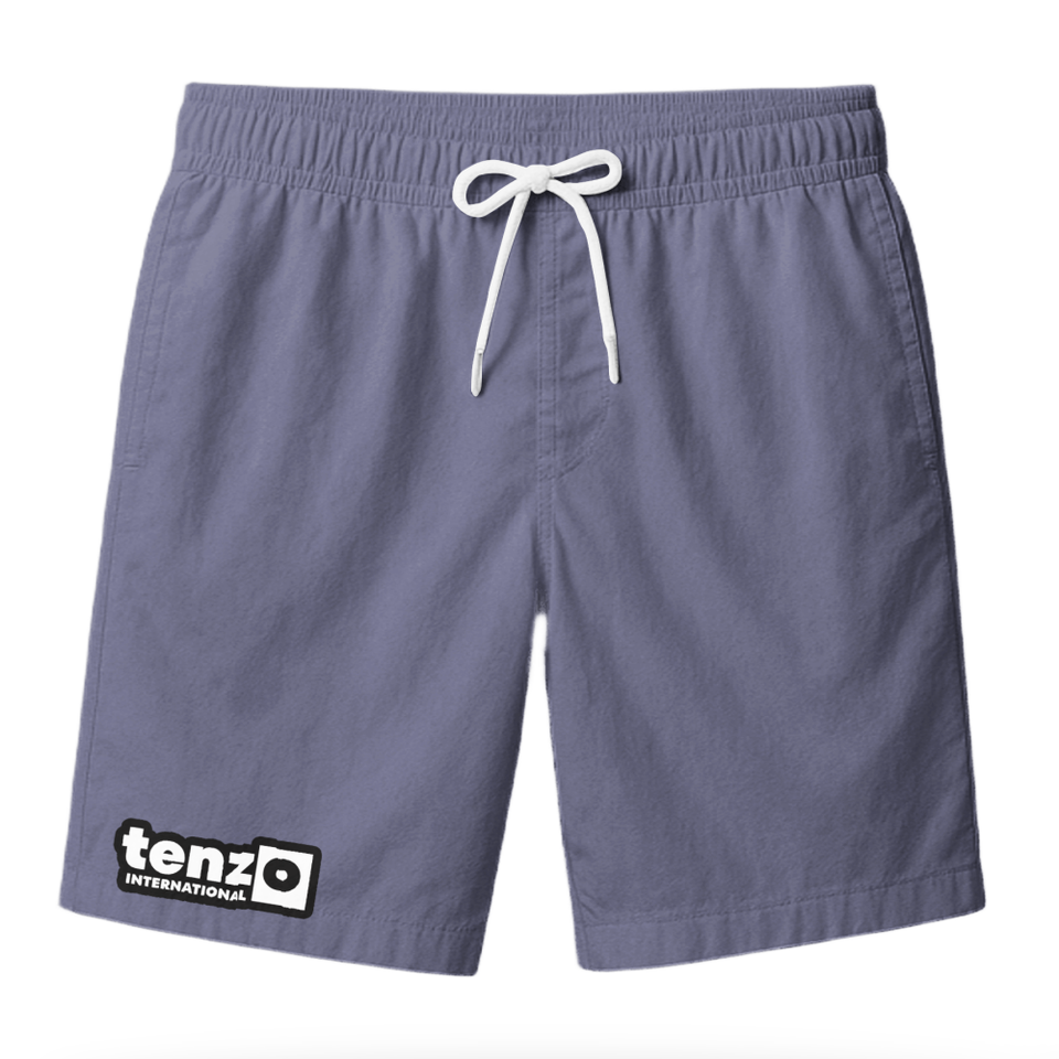 กางเกงขาสั้นลำลองผู้ชายผ้าแคนวาสเนื้อแน่น แห้งเร็ว เหมาะสำหรับออกกำลังกาย ชายหาด เอวยางยืด พิมพ์โลโก้ แบรนด์ชุดชายหาด