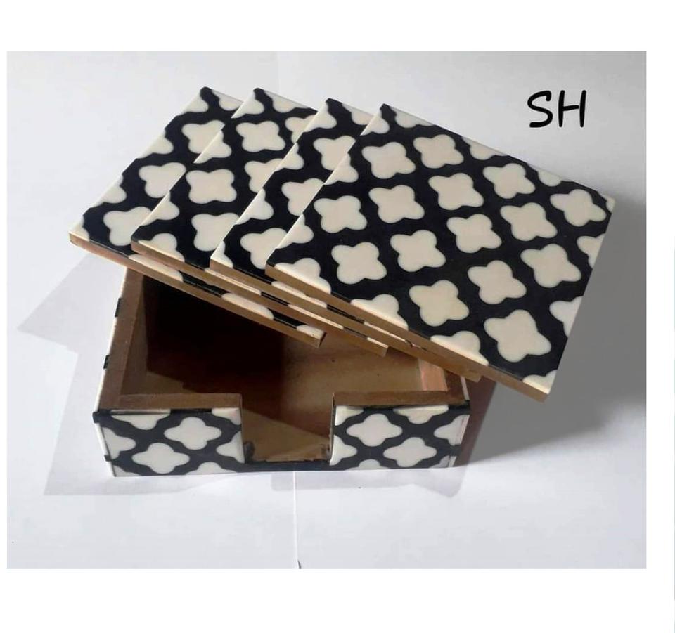 Product name:Bone And Brass Inlay Wood Coaster