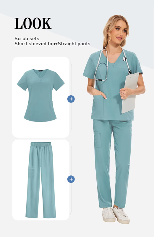 ชุดยูนิฟอร์มพยาบาลแบบสั่งทำ ผ้าคอตตอนผสมยืดได้ 4 ทิศทาง คุณภาพสูง ตรวจจับรอยขาดได้ ชุดสครับสำหรับโรงพยาบาล แฟชั่นสำหรับทั้งชายและหญิง