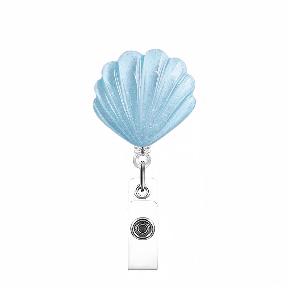 ม้วนป้าย ID พลาสติกเรซินทางการแพทย์ที่กำหนดเองที่ใส่ตราหอยเชลล์มีสีรุ้งเป็นของขวัญสำหรับเครื่องประดับพยาบาล