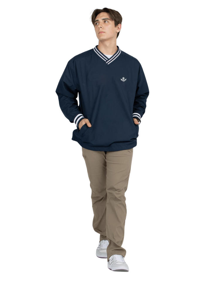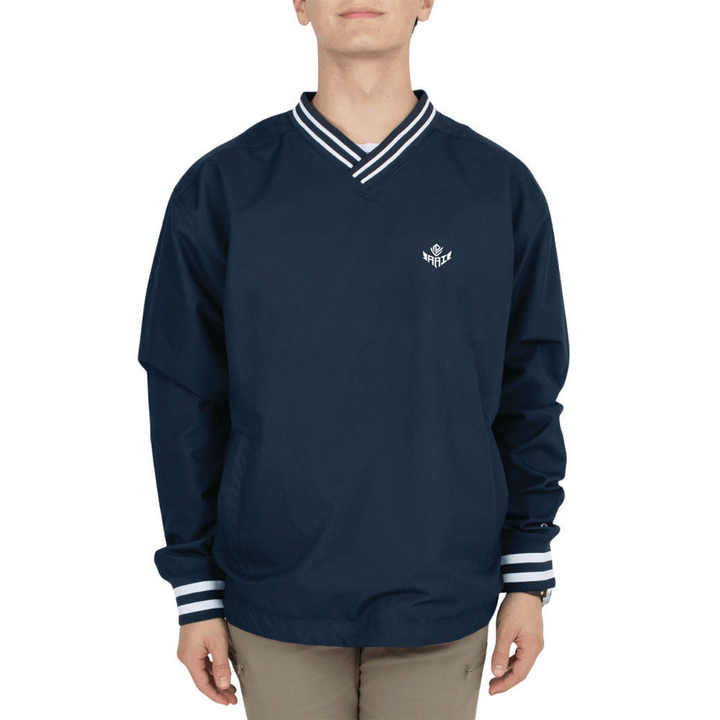 เสื้อแจ็คเก็ตคอวีแบบสวม Unisex รุ่น Custom Memory ดีไซน์ทันสมัยสำหรับเล่นกีฬา สีกรมท่า ดำ และแดง พร้อมฮู้ดลายทางที่ปลายแขนเสื้อ