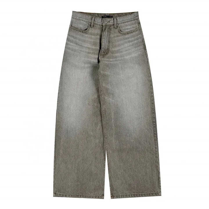 กางเกงยีนส์ผู้ชายหนังแท้สไตล์วินเทจฟอกสีทรงปกติ บริการ OEM เสื้อผ้าสตรีทแวร์