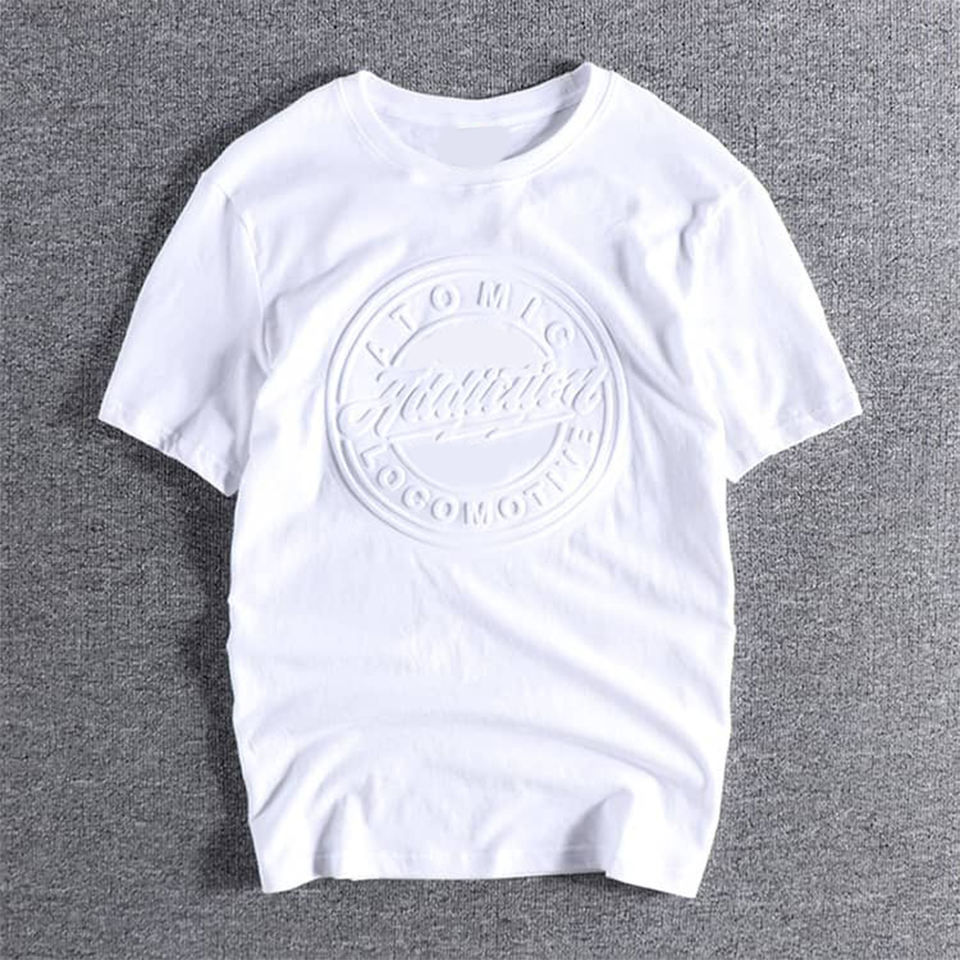 เสื้อยืดพิมพ์ลายนูนสำหรับผู้ชายเสื้อยืดพิมพ์ลาย3D ผ้าฝ้าย100% ออกแบบได้ตามต้องการโลโก้ได้ตามต้องการ