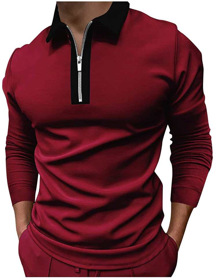 เสื้อโปโลแขนยาวแบบรูดซิปสำหรับผู้ชายผ้าฝ้าย100% เสื้อผ้าเล่นกอล์ฟสีทึบแฟชั่นผ้าเจอร์ซีย์ระบายอากาศได้ดี