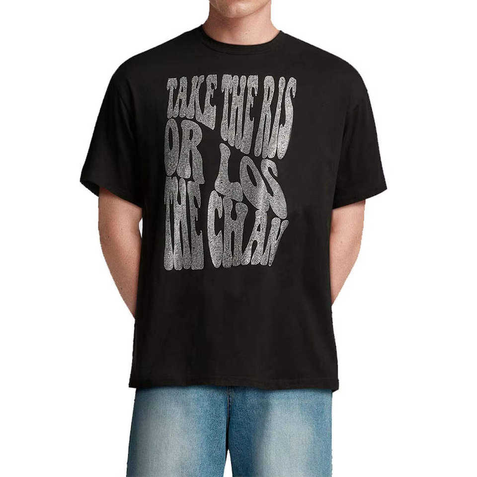 เสื้อยืดคอกลมผู้ชายแบบสั่งทำพิเศษ 180 กรัม ผ้าถักเนื้อแน่น ตกแต่งด้วยคริสตัล แขนสั้น สไตล์สตรีทแวร์ พิมพ์ลายโลโก้
