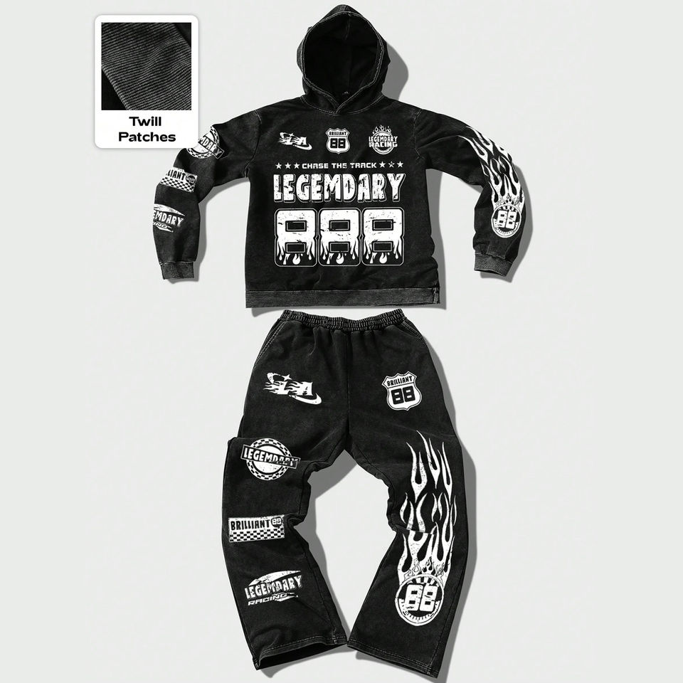 ชุดวอร์ม2ชิ้นสำหรับผู้ชายเสื้อมีฮู้ดดีทีจีเสื้อสเวตเชิ้ตและกางเกงขาบานชุดแฟชั่นลำลองแนวสตรีท
