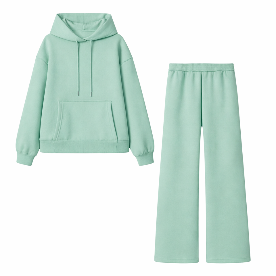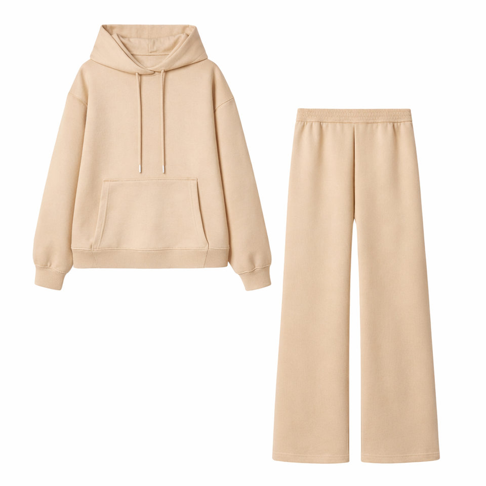 ชุดเซ็ตเสื้อฮู้ดดี้และกางเกงวอร์มทรงขาบานสำหรับผู้ชาย ตกแต่งขอบดิบ พร้อมสกรีนโลโก้หรือลายกราฟิกตามสั่ง สำหรับชุดวอร์มฤดูใบไม้ร่วง