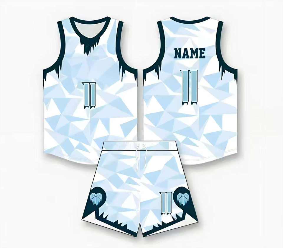 ชุดเสื้อบาสเก็ตบอลสำหรับผู้ชายชุดเครื่องแบบทีมเสื้อกีฬาระบายอากาศชุดกางเกงขาสั้นชื่อ DIY จำนวนเรขาคณิตน้ำแข็ง