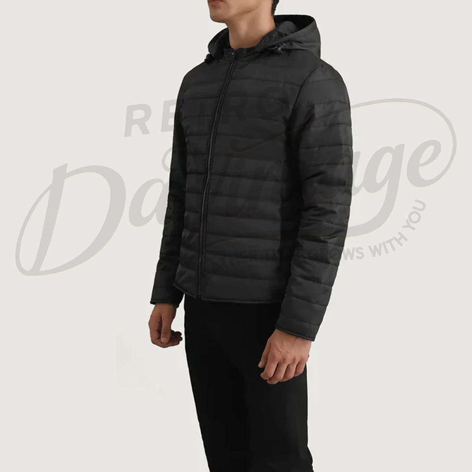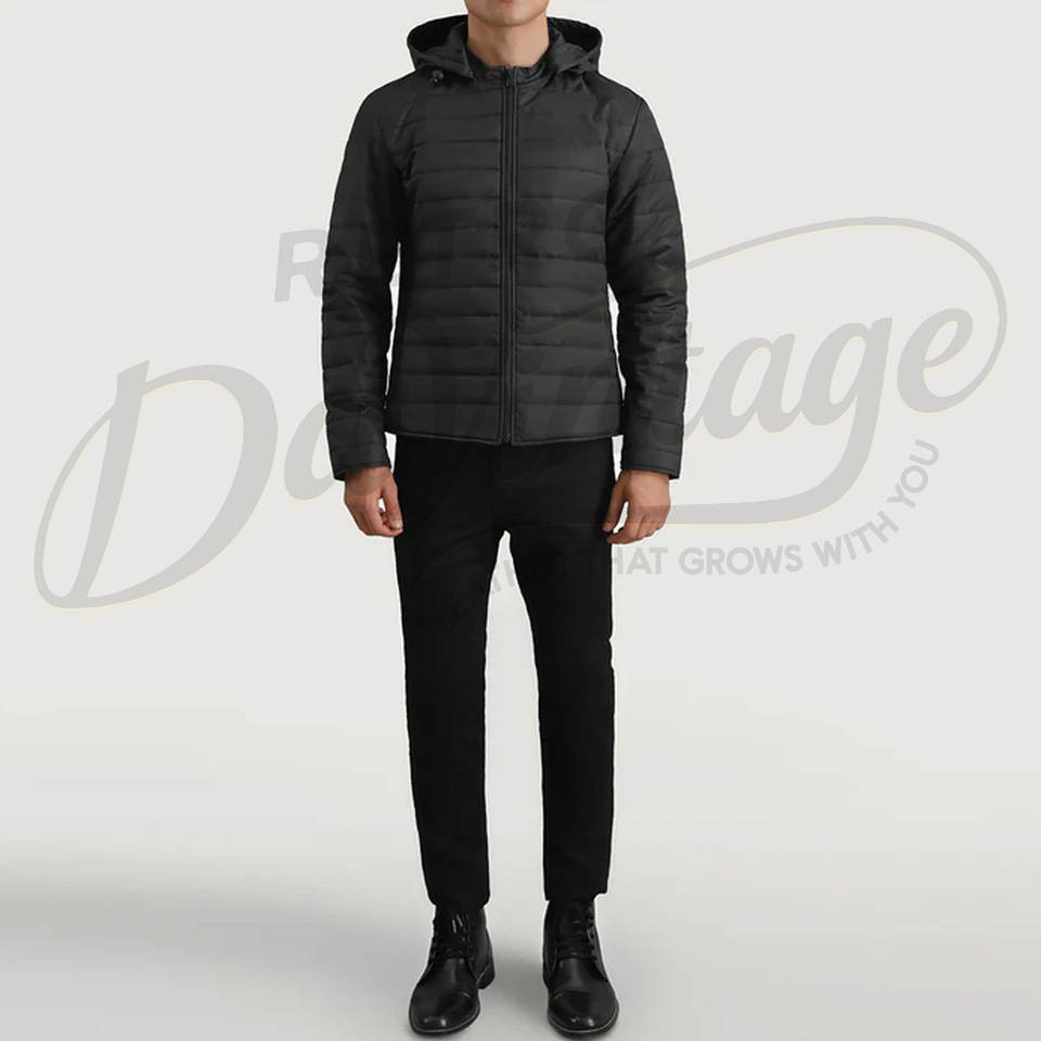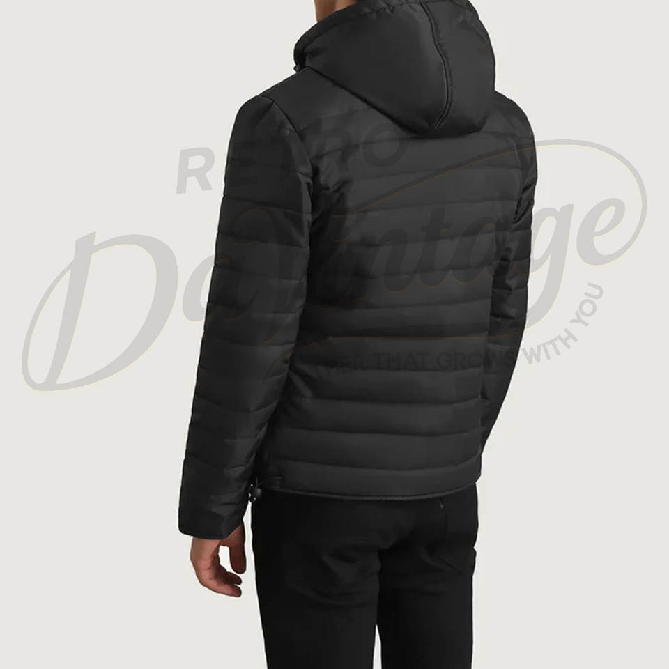 เสื้อแจ็คเก็ตพัฟเฟอร์บุขนหนาน้ำหนักมากสำหรับผู้ชาย สีดำ เหมาะสำหรับฤดูหนาว มีฮู้ด กันลม แบบควิลท์ สำหรับใส่เป็นเสื้อนอก