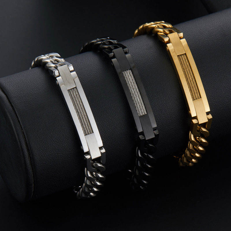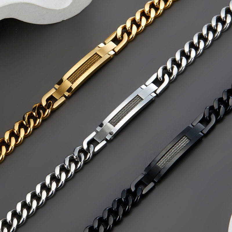 กำไลข้อมือและกำไลแฟชั่นผู้ชาย สแตนเลสสตีล 316L ป้องกันการหมอง ชุบทอง 14K 18K แบบสลักชื่อได้
