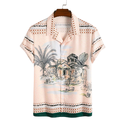 เสื้อเชิ้ตแขนสั้นสำหรับผู้ชายเสื้อเชิ้ตพิมพ์ลายแบบติดกระดุมสำหรับผู้ชาย