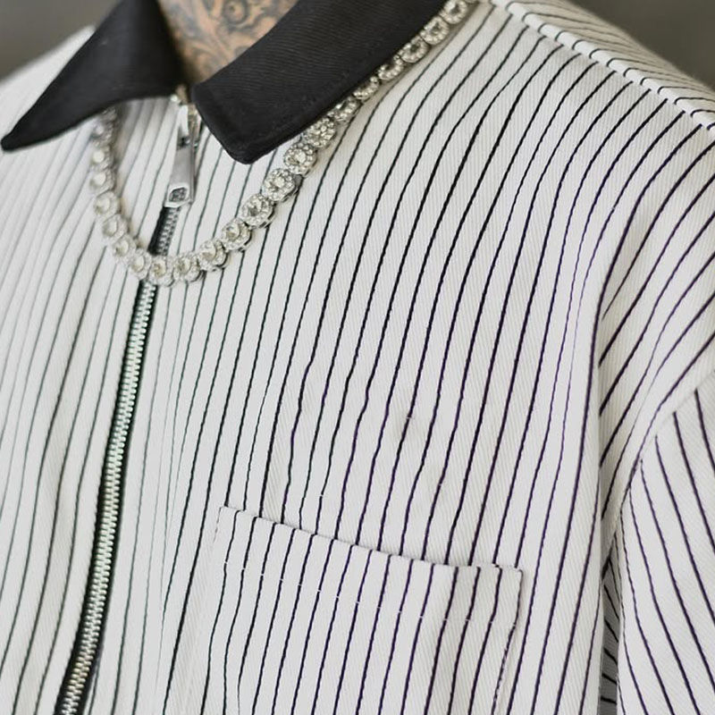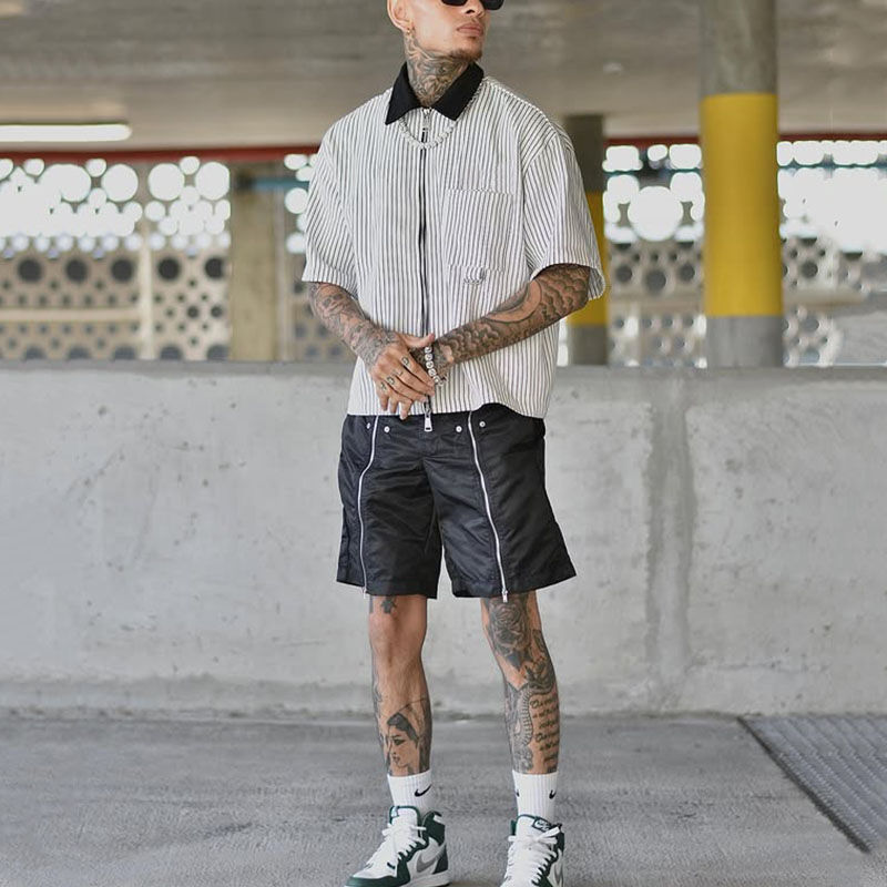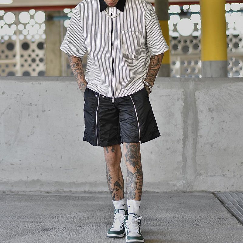 เสื้อยืดคอกลมซิปแบบลำลองสำหรับผู้ชายทรงโอเวอร์ไซส์ แขนสั้น สไตล์ไฮสตรีท ผ้าแคนวาสคอตตอน 100%