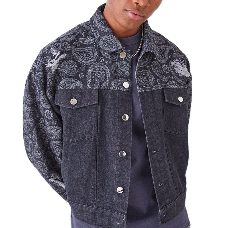 แจ็คเก็ตยีนส์ผู้ชายแบบสั่งทำพิเศษ ปี 2025 ทรงหลวม ลายพรางเคลือบผิว สไตล์สตรีทแวร์ สำหรับฤดูใบไม้ผลิ