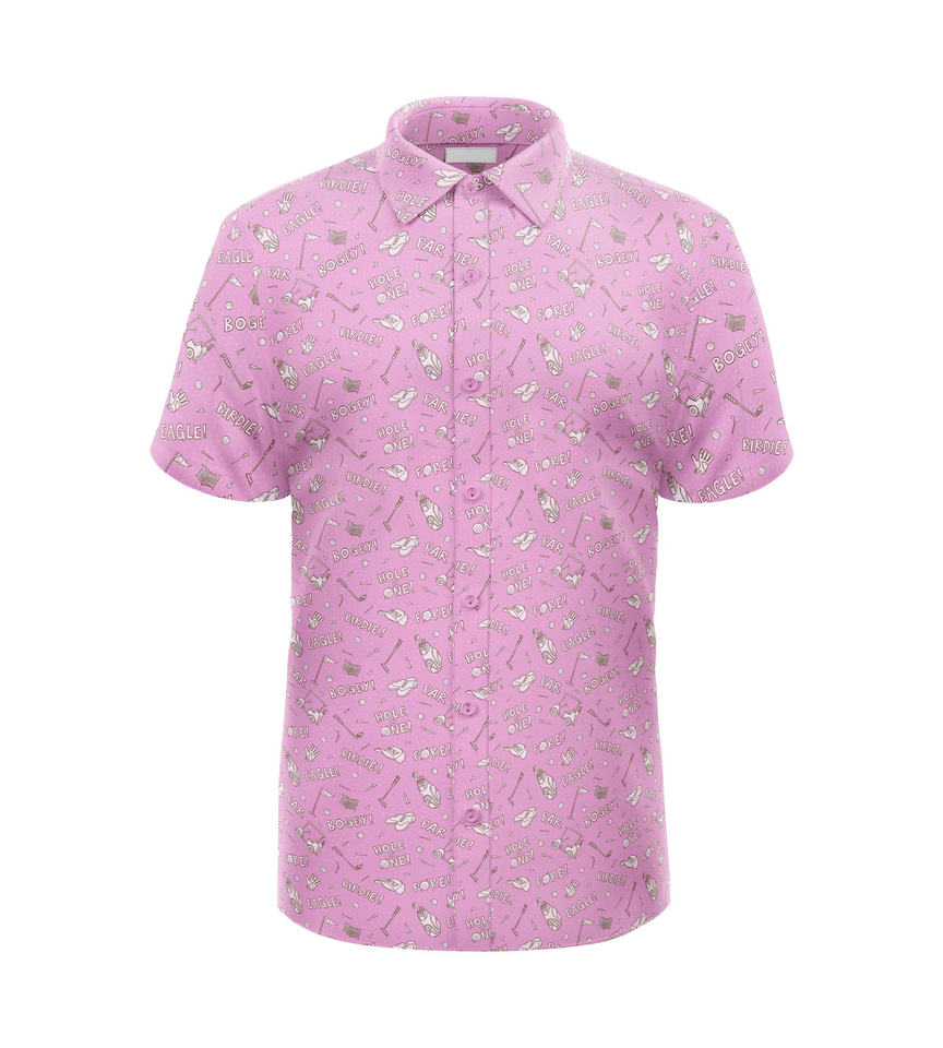 เสื้อเชิ้ตผู้ชายแบบติดกระดุมสำหรับกอล์ฟ ลายกอล์ฟสนุกๆ ผ้าเนื้อนุ่ม แห้งเร็ว แขนสั้น สำหรับชุดกอล์ฟ