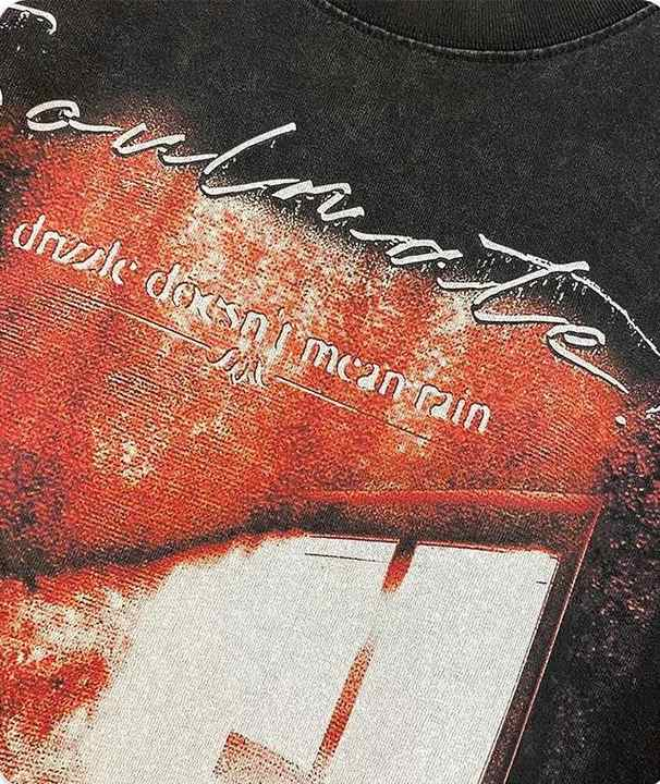 เสื้อยืดผู้ชายทรงโอเวอร์ไซส์พิมพ์ลายหน้าจอฮิปฮอปไฮสตรีทสีดำเสื้อยืดฟอกสีแบบย้อนยุคสำหรับผู้ชาย