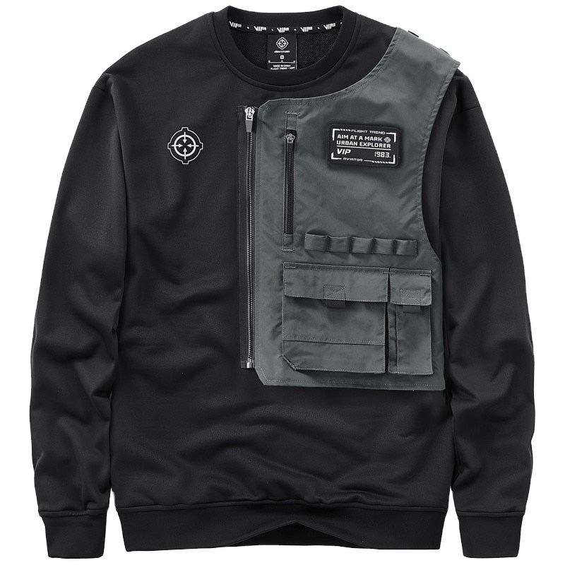 เสื้อฮู้ดผู้ชายสไตล์ฮิปฮอปไซเบอร์พังค์สีดำสไตล์สตรีทสไตล์ญี่ปุ่น