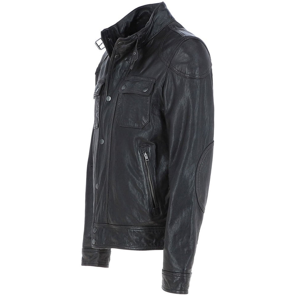 แจ็คเก็ตหนังแท้สีดำแบบสั่งทำพิเศษสำหรับผู้ชาย OEM แจ็คเก็ตฟิลด์หลายกระเป๋า แจ็คเก็ตนักขี่มอเตอร์ไซค์ เสื้อโค้ทหนังแท้ สวมใส่สบายๆ ไซส์ใหญ่