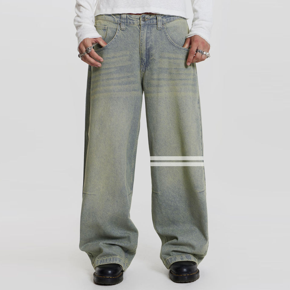 เครื่องแต่งกายของผู้ชายกางเกงยีนส์ทรงหลวมพอดีตัวสำหรับผู้ชายกางเกงยีนส์ทรงแบ็กกี้แบบดั้งเดิมดีไซน์ใหม่