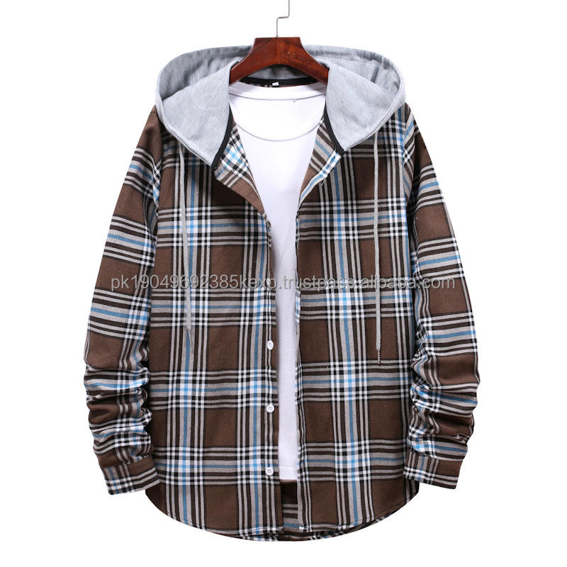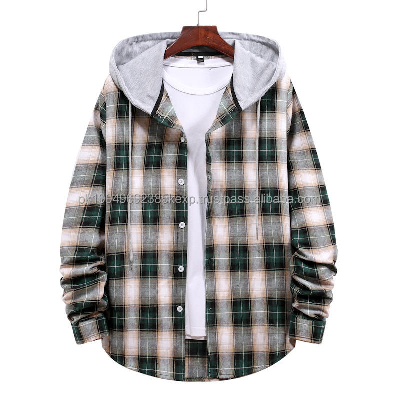 เสื้อยืดฮู้ดลายสก็อตผู้ชายสไตล์วินเทจแฟชั่นลำลองแขนยาวสองชั้นขายส่ง
