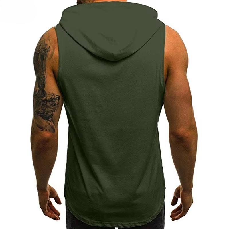 เสื้อแขนกุดมีฮู้ดสำหรับผู้ชายเสื้อครอปแบบธรรมดาสำหรับออกกำลังกายเล่นกีฬาลำลองขนาดพลัสไซส์