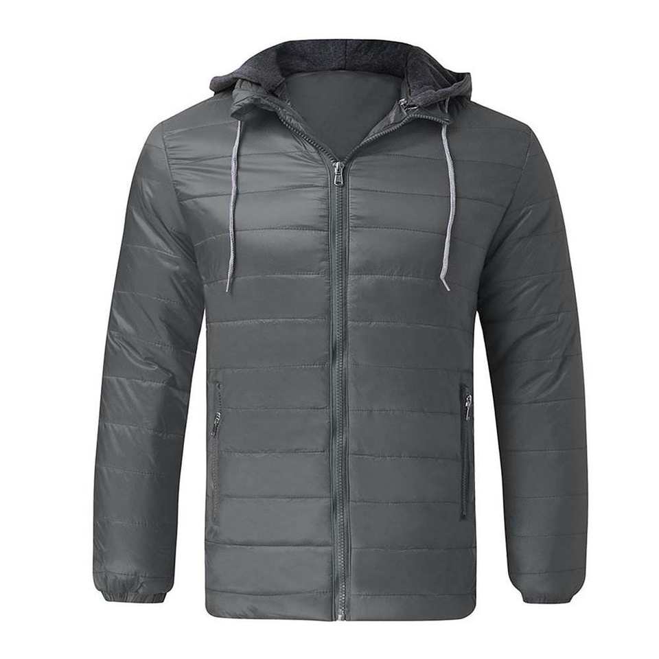 เสื้อแจ็คเก็ตบอมเบอร์แบบมีฮู้ดสำหรับผู้ชาย ผ้าแคนวาสหนาสำหรับฤดูหนาว คอตั้ง โลโก้ด้านหน้า สไตล์ลำลอง กันลม เหมาะสำหรับกิจกรรมกลางแจ้ง น้ำหนัก 500 กรัม