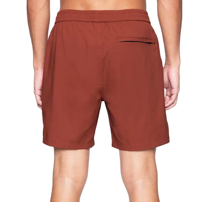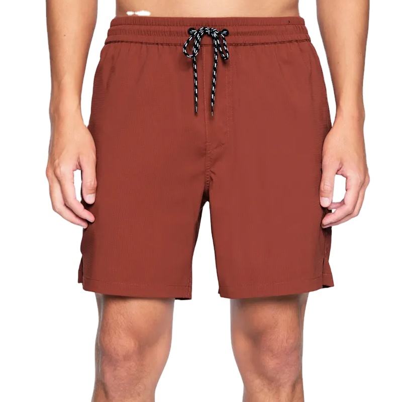 กางเกงขาสั้นออกกำลังกายแบบลำลองสำหรับผู้ชายกางเกงขาสั้นโพลีเอสเตอร์แห้งเร็วพร้อมกระเป๋าสีทึบดีไซน์เป็นมิตรต่อสิ่งแวดล้อม
