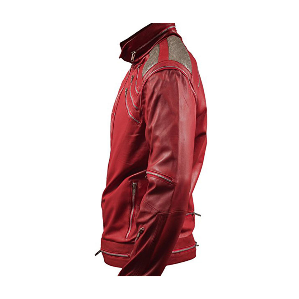 เสื้อแจ็กเก็ตหนังแท้แขนยาวสำหรับผู้ชาย,แบบมีซิปสีแดงสั่งทำโดยปีกผู้ค้า