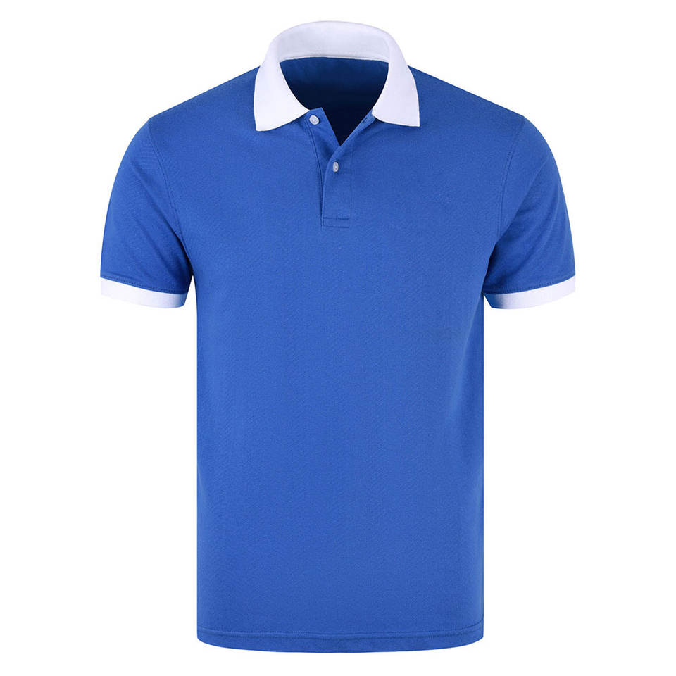 เสื้อโปโลสีน้ำเงินรอยัลสำหรับผู้ชายแบบสั่งทำ | เสื้อยืดคอปกและปลายแขนสีขาวตัดกัน แขนสั้น ผ้าปิเก้คอตตอน สำหรับกอล์ฟ ขายส่งเสื้อทีม