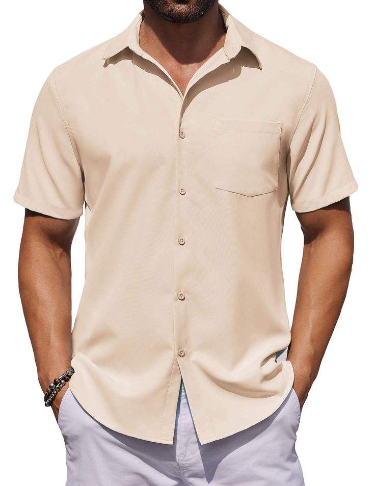 เสื้อเชิ้ตผู้ชายลำลองคุณภาพสูง เสื้อผ้าฤดูร้อน แขนสั้น ไม่ยับ สำหรับใส่ทำงานในออฟฟิศหรือโอกาสทางการ ติดกระดุม