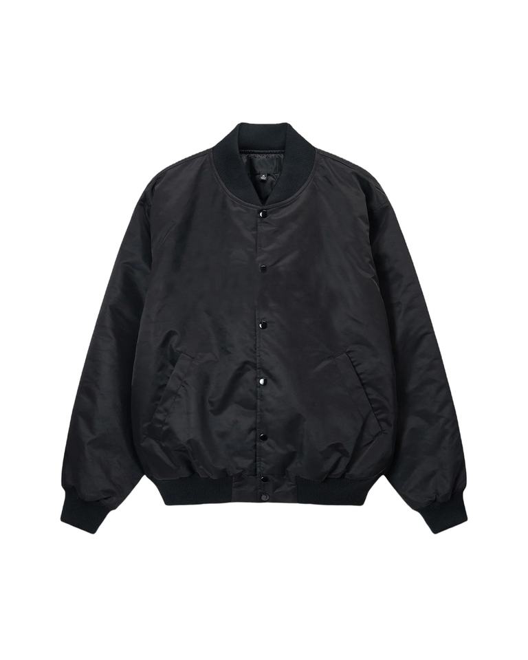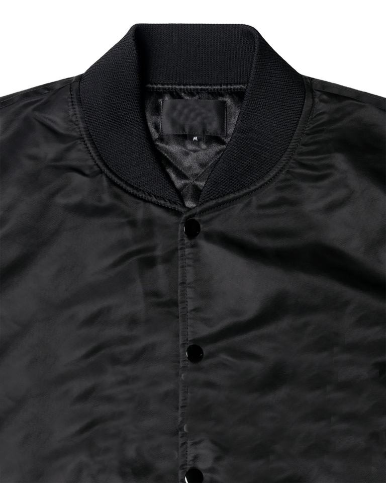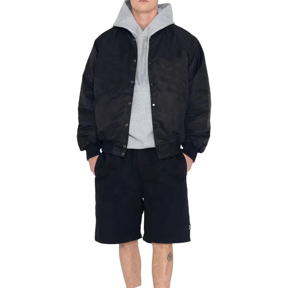 แจ็คเก็ตเบสบอลแบบวาร์ซิตี้ผ้าซาตินสั่งทำสำหรับผู้ชาย ขายส่ง แจ็คเก็ตวาร์ซิตี้ผ้าซาตินแบบมีตัวอักษรสำหรับผู้ชาย