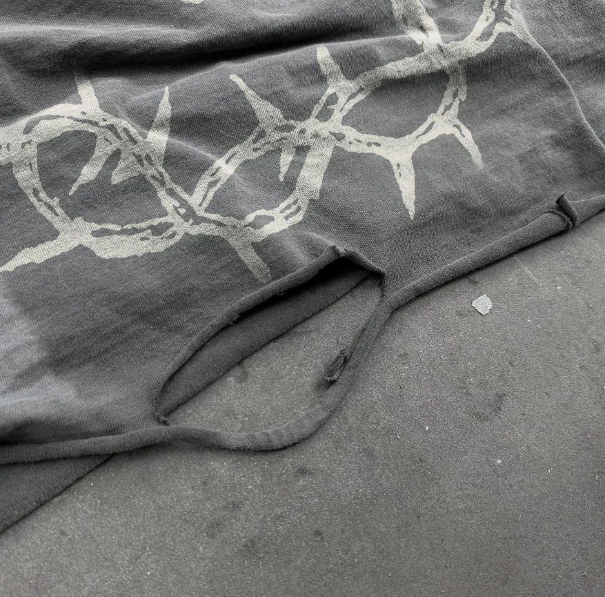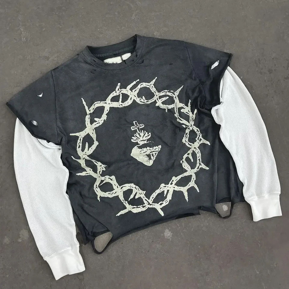 เสื้อยืดพิมพ์ลายกราฟิกสไตล์วินเทจ ทำสีเอซิด ผ้าฝ้าย 100% แขนยาวสองชั้น สำหรับผู้ชาย สั่งทำได้