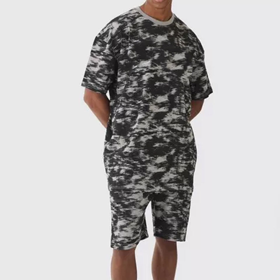 Custom Men Shorts Set With Tie Dye Print With High Quality of T Shirts and Shorts Two Pcs Sets Men Summer Sets With Regular Size