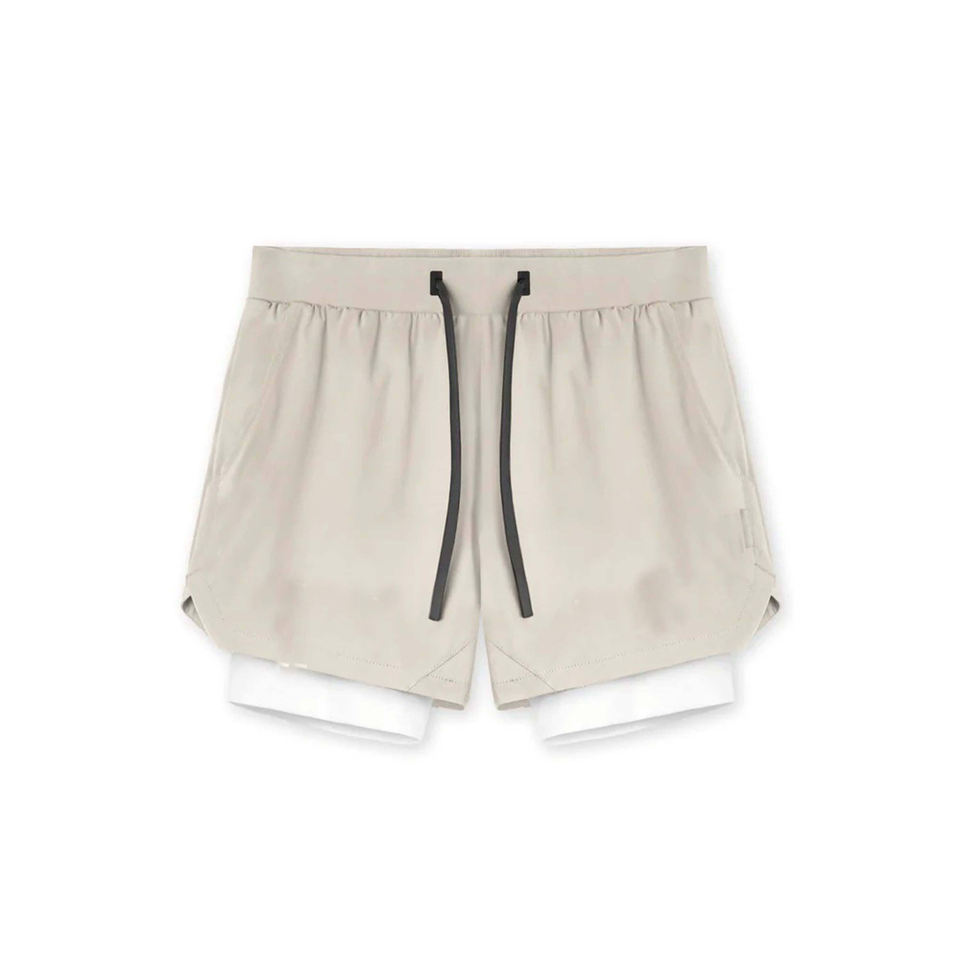 กางเกงขาสั้นสองในหนึ่งสำหรับผู้ชายกางเกงขาสั้นสำหรับออกกำลังกายวิ่งพร้อมเชือกรัดเอวแห้งเร็วระบายอากาศ