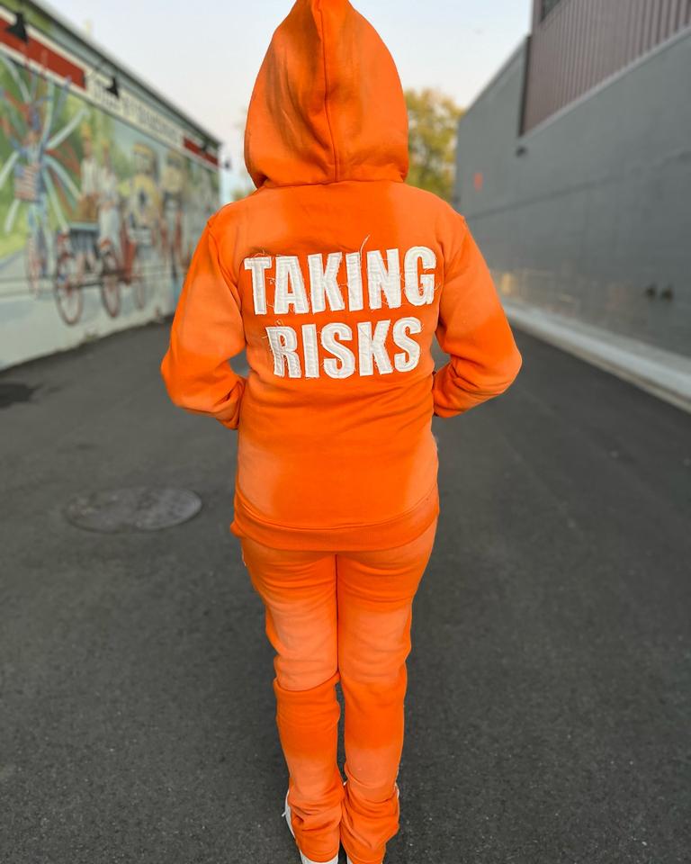 ชุดเซ็ตฮู้ดดี้และกางเกงวอร์มสตรีทแวร์ผู้ชายแบบสั่งทำพิเศษ แต่งลายปักแบบดิสเทรส ล้างสีแบบแอซิดวอช ซิปยาวเต็มตัว ทรงขาบาน