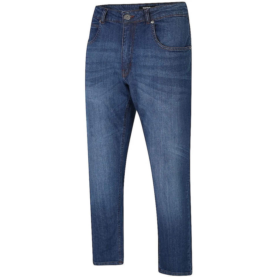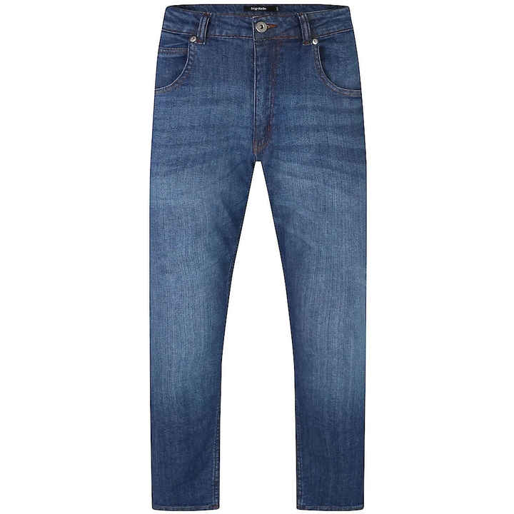 กางเกงยีนส์เดนิมยืดทรงสลิมฟิตสีน้ำเงินกลางแบบสโตนวอชสำหรับผู้ชาย คุณภาพสูง ทรงเทเปอร์ ลำลอง ผ้าฝ้าย มีไซส์ใหญ่