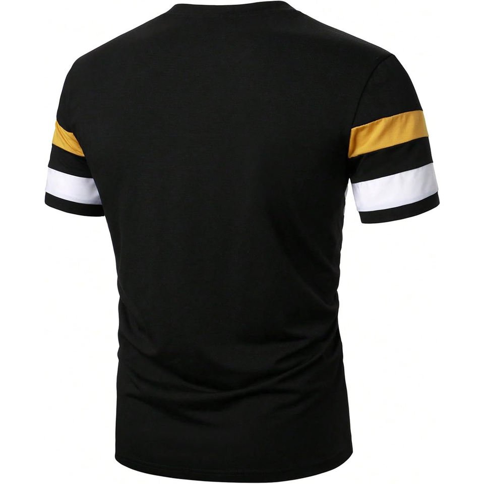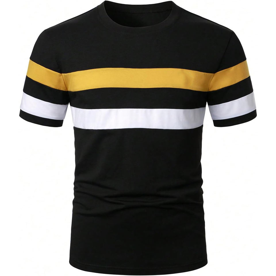 เสื้อยืดผู้ชายลายทาง ผ้าฝ้าย 100% คุณภาพสูง น้ำหนักเบา แขนสั้น คอกลม สไตล์ลำลอง แฟชั่นลายทางตัดสี